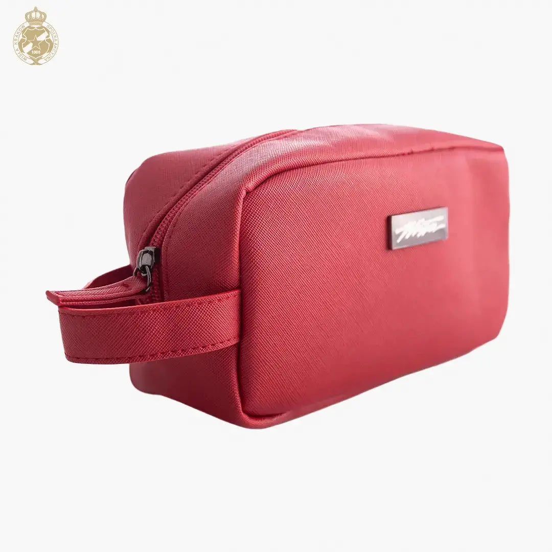 Introducing the Wisła Cosmetic Bag - Red, a stylish and durable accessory for every Wisła Kraków fan. Crafted from tough material in a vibrant crimson shade, it blends the club’s spirit with everyday practicality. A minimalist metal plaque bearing "Wisła" adds a refined touch of fan pride without shouting.